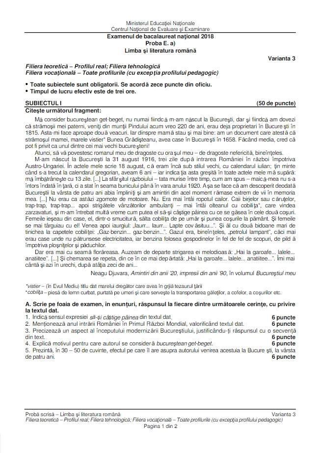 +373 22 232 402, +373 22 233 545, +373 22 232 469 fax: Timpul efectiv de lucru este de trei ore. Model de subiect pentru olimpiada de limbă și literatură română, secțiunea b, 2019